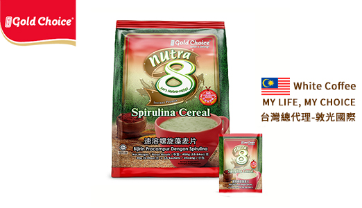 馬來西亞原裝進口, 金寶Nutra 8系列,最新產品-速溶螺旋藻麥片 採用螺旋藻粉,麥片,燕麥,糙米,蔗糖等原料調配而成。